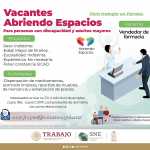 Mediante su estrategia “Vacantes Abriendo Espacios” dirigida a personas con discapacidad y adultos mayores, el Servicio Nacional de Empleo Tabasco (SNET), continúa difundiendo en redes sociales diferentes vacantes con el propósito de insertarlos en el mercado laboral.