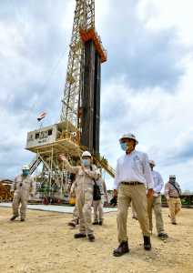 El director general de Petróleos Mexicanos, Octavio Romero Oropeza, hizo un recorrido de supervisión por las instalaciones del pozo Madrefil 22, en Tabasco, que se encuentra perforando a más de 6 mil metros de profundidad para contribuir con la producción de gas y aceite.