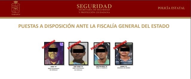Otros cuatro sujetos fueron remitidos a la Fiscalía General del Estado (FGE), como presuntos responsables de robo a comercio, robo de vehículo y violencia de género.