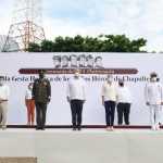 En presencia de los comandantes de la 30 Zona Militar, José Fausto Torres Sánchez, y de la Quinta Zona Naval Militar, Gabriel Pablo González Contreras, el mandatario presidió la ceremonia cívica para honrar a los seis cadetes, quienes en 1847 decidieron entregar sus vidas, antes que permitir el avance de las tropas extranjeras invasoras.