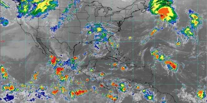 Los modelos de pronóstico para el Pacífico Norte indican cielo parcialmente nublado con ambiente templado durante la mañana; cielo nublado y ambiente de cálido a caluroso hacia la tarde, con descargas eléctricas y viento del suroeste de 15 a 30 km/h.