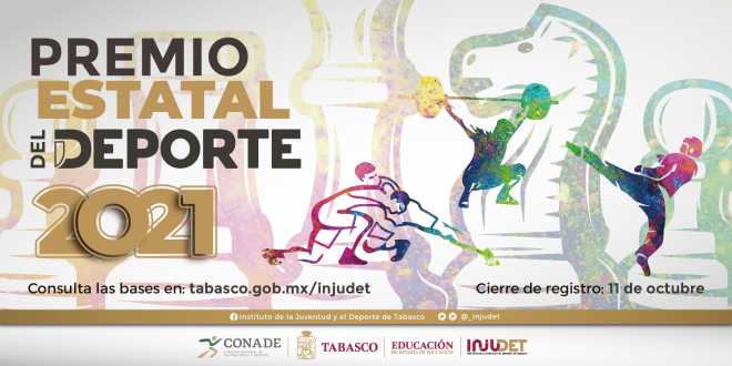 Consulta las Bases en: https://tabasco.gob.mx/premio-estatal-del-deporte-2021