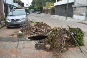 En la calle Cactus se encuentra un socavón que ya tiene un año