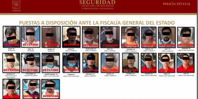 Los detenidos están relacionados con los delitos de robo a casa habitación y a comercio; violación, pederastia, amenaza, violencia de género y robo de vehículo.
