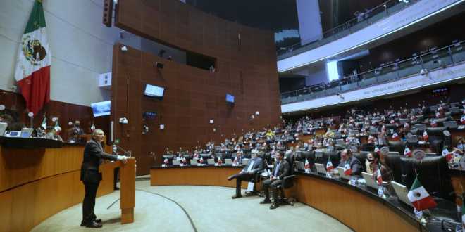 Desde la tribuna Adán Augusto destacó el trabajo realizado por la ex secretaria de Gobernación, Olga Sánchez Cordero y ahora presidenta del Senado.
