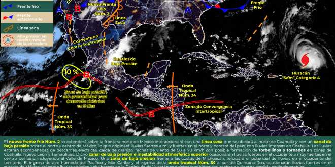 En su reporte, indicó que se mantendrán temperaturas entre los 32 y 36 grados Celsius y las mínimas de 23 a 26 grados.