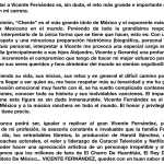 Agregó que “poniendo de lado la grandísima responsabilidad y exaltación de interpretarlo de la única forma que se tiene que hacer, esto es: con un profundo y mayúsculo respeto y una minuciosa preparación histriónica (biográfica, personal y sobre todo emotiva), a título personal, interpretar a Vicente me provoca una especial carga emocional”.