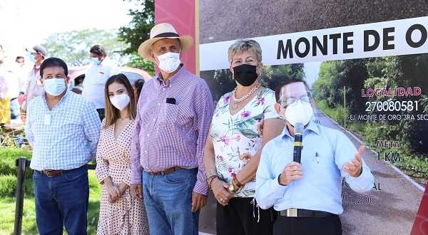 Última parada. Ejido Monte de Oro segunda sección. El Gobernador inaugura la pavimentación de dos caminos a base de mezcla en frío y obras de drenaje menor, con una inversión de 6.8 millones de pesos, en beneficio de mil 500 habitantes.