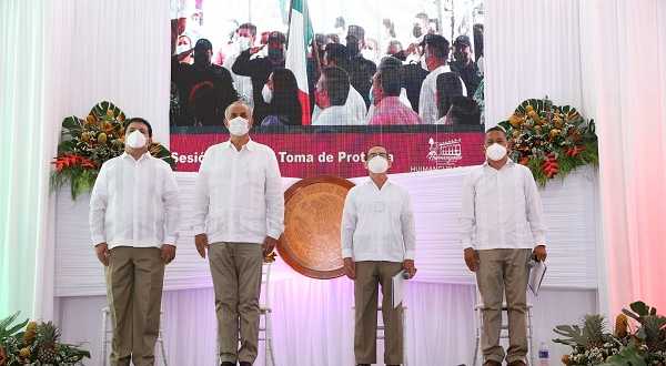 Junto a José del Carmen Torruco Jiménez, alcalde saliente, el mandatario afirmó que el compromiso más importante de esta nueva administración será el de atender y generar políticas que reduzcan la desigualdad, promover las actividades económicas y generar oportunidades de crecimiento para las nuevas generaciones.