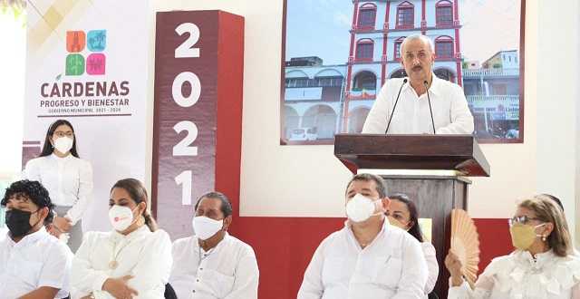 Desde Cárdenas, donde presidió la toma de protesta de María Esther Zapata Zapata como presidente municipal para el periodo 2021-2024, aseveró que en Tabasco “la transformación está en marcha”; es evidente –enfatizó– que si avanzamos y resistimos, lograremos potenciar el desarrollo y crecimiento de Cárdenas.
