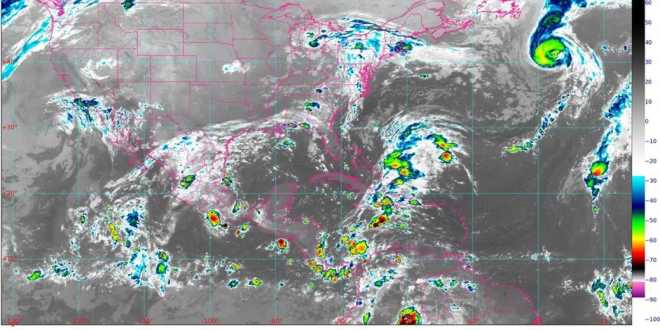 El pronóstico para la Península de Yucatán es de cielo medio nublado con ambiente de templado a cálido durante la mañana; cielo nublado y ambiente caluroso hacia la tarde, descargas eléctricas y viento del este y sureste de 20 a 35 km/h en la región.