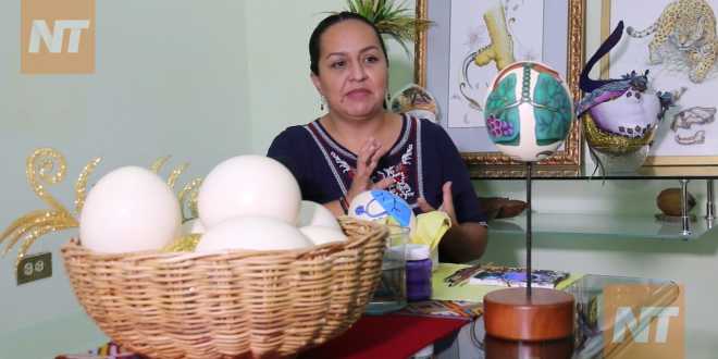 Como una forma de rendir un homenaje al personal médico que lucha contra la pandemia del COVID-19, la tabasqueña Dalila Medina Sauret crea diseños coloridos en huevos de avestruz.