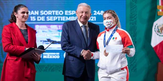 Indicó que los estímulos para las y los atletas provienen de recursos del Instituto para Devolver al Pueblo lo Robado, los cuales se obtienen del sorteo o subasta de bienes decomisados a la delincuencia de cuello blanco u organizada. En esta ocasión la Lotería Nacional colaboró con esa institución para llevar a cabo el Gran Sorteo Especial número 248 el pasado 15 de septiembre.