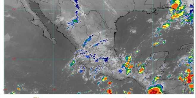 Hoy miércoles, se pronostican lluvias puntuales torrenciales (de 150 a 250 milímetros [mm]) en sitios de Chiapas; intensas (de 75 a 150 mm) en áreas de Oaxaca, Tabasco y Veracruz; muy fuertes (de 50 a 75 mm) en regiones de Guerrero y Puebla; fuertes (de 25 a 50 mm) en localidades de Campeche, Estado de México y Quintana Roo; intervalos de chubascos (de 5 a 25 mm) en Ciudad de México, Colima, Durango, Jalisco, Michoacán, Morelos, Nayarit y Yucatán, y lluvias aisladas (de 0.1 a 5 mm) en Aguascalientes, Chihuahua, Guanajuato, Hidalgo, Querétaro, San Luis Potosí, Sinaloa, Tlaxcala y Zacatecas.