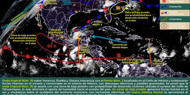 Puntualizó que se este viernes se prevén algunas lluvias de 25 a 50 milímetros, previéndose las más elevadas en la región de la Sierra ante la presencia de la Onda Tropical No.35.