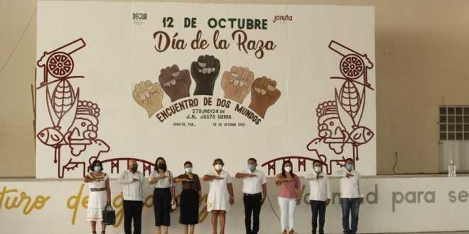 Este martes 12 de octubre el Ayuntamiento Constitucional de Jonuta en conjunto con el jardín de niños Justo Sierra, realizaron el acto cívico en conmemoración al día de la raza “Encuentro de dos mundos”.
