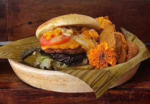 En su versión combo, la hamburguesa va acompañada de papas con crema de habanero/xcatik de la casa y un refresco de Xec, que consiste en cítricos locales, jícama y un toque de chamoy. El precio es de 129 pesos y formará parte del menú hasta noviembre próximo.
