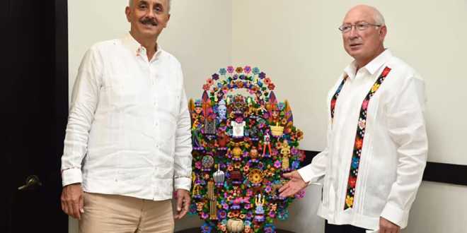 El encuentro es resultado de la relación y colaboración del gobierno estadounidense, representado en México por el embajador Ken Salazar, y el mandatario estatal Carlos Manuel Merino Campos