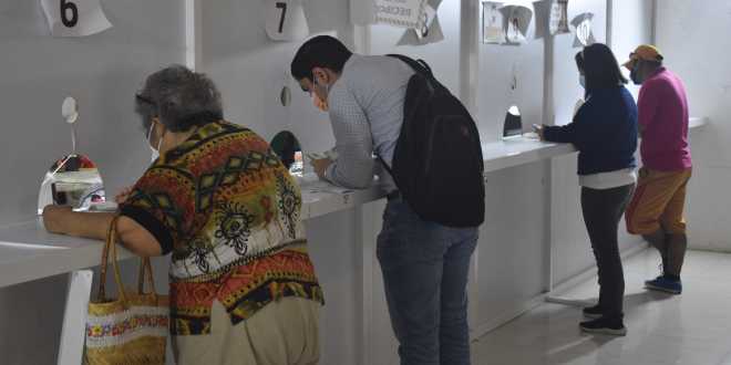 El módulo receptor de cobros en el Ayuntamiento de Centro registra una gran actividad en los últimos días. Una gran cantidad de personas se observa en el Palacio Municipal en las ventanillas donde se pagan diversos servicios e impuestos como agua, predial, defunciones, entre otros.