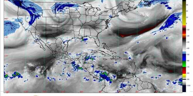 Durante este miércoles, la Onda Tropical Número 38 se asociará con una zona de baja presión con potencial para desarrollar un ciclón tropical en el sureste de México, por lo que se pronostican lluvias intensas (de 75 a 150 milímetros [mm]) para Chiapas; muy fuertes (de 50 a 75 mm) para Oaxaca; fuertes (de 25 a 50 mm) en Campeche, Guerrero, Quintana Roo, Tabasco y Veracruz, y chubascos (de 5 a 25 mm) en Yucatán, así como viento con rachas de 50 a 60 kilómetros por hora (km/h) en el Golfo e Istmo de Tehuantepec.