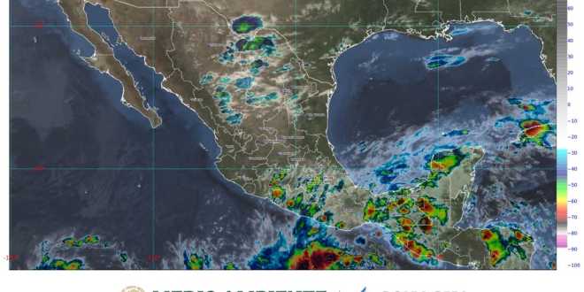 Para las próximas horas, se pronostican lluvias puntuales intensas (de 75 a 150 milímetros [mm]) en áreas de Chiapas, Guerrero, Oaxaca, Tabasco y Veracruz; muy fuertes (de 50 a 75 mm) en regiones de Campeche y Puebla; fuertes (de 25 a 50 mm) en zonas de Chihuahua, Coahuila, Durango, Michoacán, Quintana Roo y Yucatán, así como intervalos de chubascos (de 5 a 25 mm) en la Ciudad de México, Colima, Estado de México, Hidalgo, Jalisco, Morelos, Nuevo León, San Luis Potosí, Tamaulipas, Tlaxcala y Zacatecas.