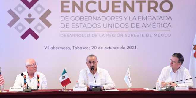 “Sin salirnos del marco de la institucionalidad y la gobernanza vamos a generar las condiciones de paz, orden, crecimiento económico y desarrollo sostenible” que el Sur-Sureste demanda, planteó el mandatario tabasqueño.