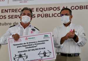 El equipo del cual hizo entrega Pemex y al cual se le dio banderazo de salida, consta de 21 patrullas, 15 drones de última generación, 2 unidades tipo vactor 1 una unidad de servicios médicos para la realización de mastografías.