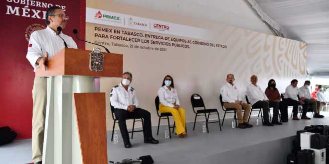 La empresa productiva otorgó unidades para mejorar los servicios públicos del estado, y en voz de su director, Octavio Romero Oropeza, estimó un presupuesto de 160 mil millones de pesos para 2022 en trabajos de exploración y extracción de crudo
