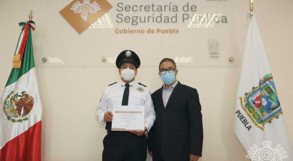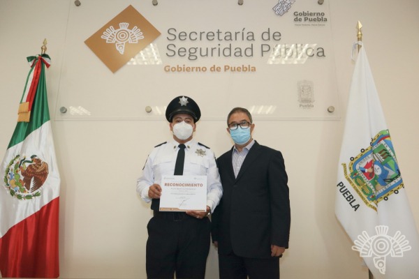 El secretario de Seguridad Pública (SSP), Rogelio López Maya entregó un reconocimiento y una medalla a Arturo Daniel Castillo Gerardo, agente de la Policía Estatal Turística que recientemente regaló un par de sandalias a un menor en el Centro Histórico.