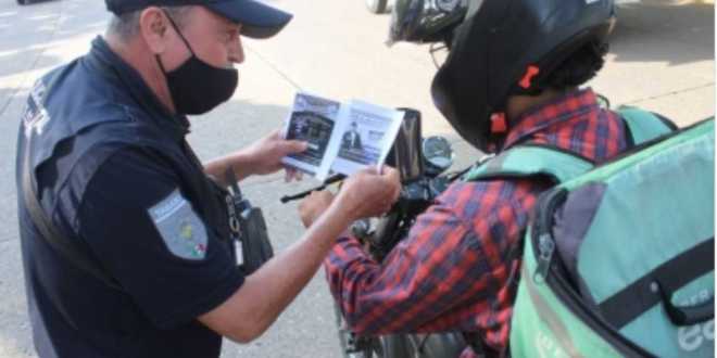 Los policías viales entregaron trípticos a los ciudadanos que circulaban en sus automóviles o motocicletas, reiterándoles que el área de finanzas tiene descuentos para que regularicen sus placas para evitar sanciones posteriores al ser un contribuyente cumplido.