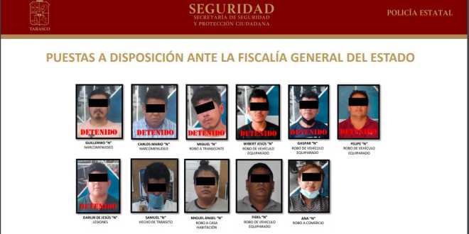 Por robo a transeúnte, casa habitación, comercio, vehículo, motocicleta y otros delitos se pusieron a disposición de la Fiscalía General del Estado (FGE) 11 presuntos responsables y 32 más remitidos al Juez Calificador.