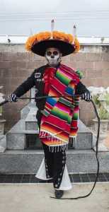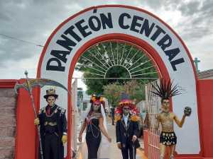 Con el panteón central de escenario, alrededor de 25 jóvenes de diferentes edades se presentaron con vistosas caracterizaciones de catrines y catrinas. Todos participaron en una sesión fotográfica y también lo harán en el desfile programado para el martes 2 de noviembre por las principales calles de la ciudad.
