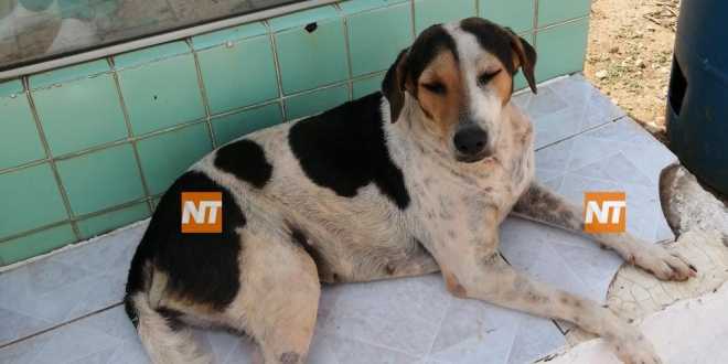 Este perrita es el guardiana y permanente acompañante de las tumbas del panteón de Tamulté de las Barrancas; vigila siempre el recinto.