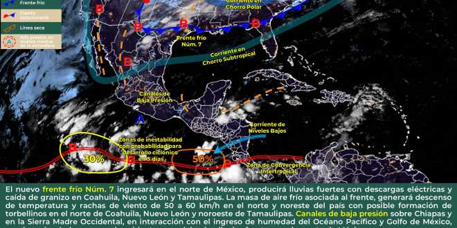 El Instituto de Protección Civil del Estado de Tabasco (IPCET) reporta que canales de baja presión se mantendrán limitados por los remanentes de aire seco, manteniendo un potencial de lloviznas generales con chubascos aislados en la mayor parte de la Chontalpa.