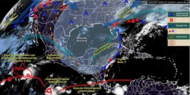 El Instituto de Protección Civil del Estado (IPCET), informa a la población que por los efectos del Frente Frío Número 7, se registrarán lloviznas esporádicas en el centro del estado durante la noche o madrugada.