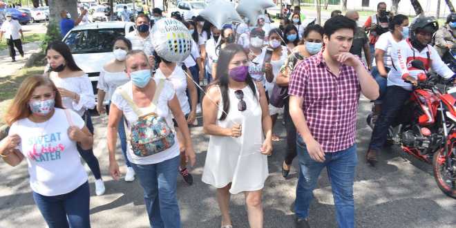 Al terminar el recorrido, se levantó una plegaria por Octavio Ocaña y se soltaron globos frente a la Catedral del Señor de Tabasco.