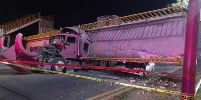 Durante la tarde-noche de este lunes, un puente peatonal colapsó y cayó sobre un tráiler sobre la carretera Los Reyes-Texcoco, en el Estado de México.