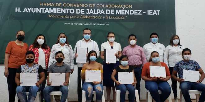 Con el firme compromiso de trabajar a la par para llevar los servicios educativos a los habitantes del municipio de Jalpa de Méndez en situación de analfabetismo y rezago educativo, se llevó a cabo la firma de convenio entre el Instituto de Educación para Adultos de Tabasco (IEAT) y el Ayuntamiento municipal.