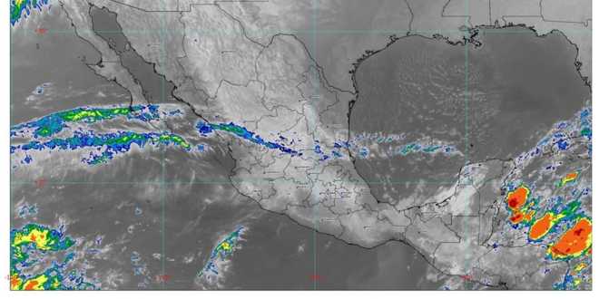 Hoy martes, canales de baja presión extendidos sobre la Península de Yucatán y el sureste de la República Mexicana, en interacción con el ingreso de humedad procedente del Golfo de México y el Mar Caribe, originarán lluvias puntuales muy fuertes (de 50 a 75 milímetros [mm]) en Quintana Roo; fuertes (de 25 a 50 mm) en zonas de Chiapas y Tabasco; intervalos de chubascos (de 5 a 25 mm) en Campeche y Yucatán, y lluvias aisladas (de 0.1 a 5 mm) en el Estado de México, Guerrero, Jalisco, Michoacán, Oaxaca y Veracruz.