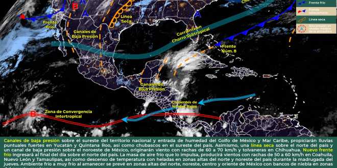 De acuerdo con información del Servicio Meteorológico Nacional, se mantendrá la influencia de aire seco, limitando la entrada de humedad y los canales de baja presión.
