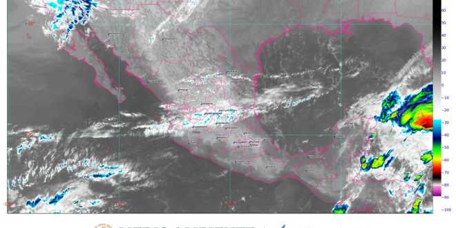 Se pronostica, para el Pacífico Centro, ambiente frío con heladas durante la mañana en zonas altas de la región, ambiente de cálido a caluroso al atardecer, cielo de parcialmente nublado a medio nublado durante el día y viento de dirección variable de 15 a 30 km/h.