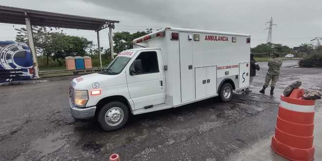 A las 09:55 horas, en el punto de control migratorio ‘La Venta’ se solicitó el alto de una ambulancia de unidad de cuidados intensivos, sin placas de circulación, a fin de realizar una revisión de rutina.
