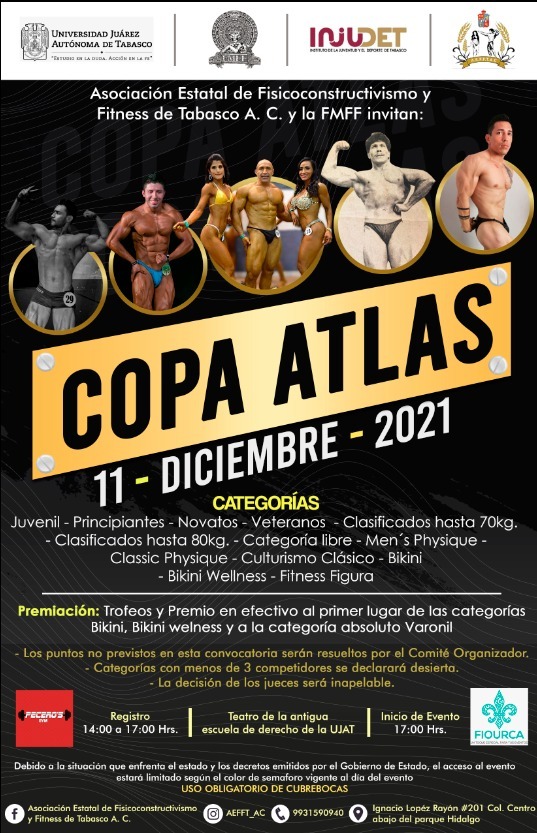 La Asociación Estatal de Físicoconstructivismo y Fitness de Tabasco (AEFFT) lanzó la convocatoria oficial para la Copa Atlas, su último certamen del año.