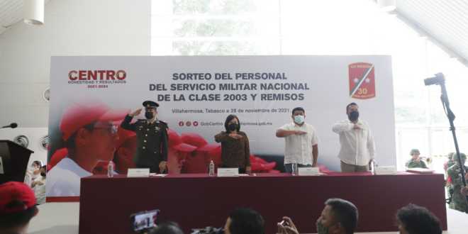 “Cumplir con el servicio militar es una muestra de responsabilidad social”, afirmó la alcaldesa Yolanda Osuna Huerta, al presidir la ceremonia del Sorteo de personal del Servicio Militar Nacional (SMN), Clase 2003 y Remisos, organizado por la XXX Zona Militar en el «Gran Salón Villahermosa» del parque Tomás Garrido Canabal.