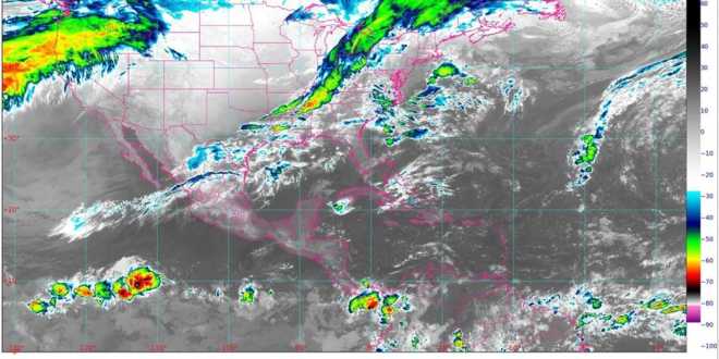 Una circulación anticiclónica en niveles medios de la atmósfera mantendrá cielo despejado y ambiente de cálido a caluroso en gran parte de la República Mexicana, con temperaturas máximas de 35 a 40 grados Celsius en Campeche, Chiapas, Colima, Guerrero, Jalisco, Michoacán, Nayarit, Oaxaca, Quintana Roo, Sinaloa y Yucatán, y de 30 a 35 grados Celsius en Baja California, Morelos, Nuevo León, el suroeste de Puebla, San Luis Potosí, Tabasco, Tamaulipas y Veracruz.