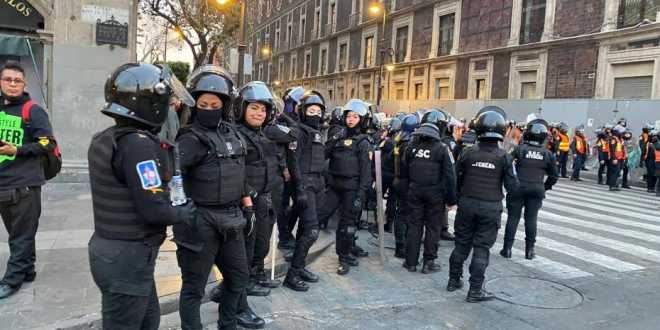 “Yo quisiera estar manifestándome con ellas, pero no llegar a actos de destruir la ciudad donde radicamos, si quiero y voy a manifestarme, que sea por lo que estoy marchando no destrozar ni agredir”, dijo una uniformada que se encontraba formada rodeando la calle de Monte de Piedad, en el Centro Histórico.