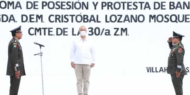 El gobernador Carlos Manuel Merino Campos atestiguó la Ceremonia de Toma de Posesión y Protesta de Bandera, del General de Brigada Diplomado de Estado Mayor Cristóbal Lozano Mosqueda, como Comandante de la 30 Zona Militar.