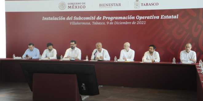 El gobernador Carlos Manuel Merino Campos encabezó la instalación del Subcomité de Programación Operativa Estatal de Tabasco de Programas para el Bienestar, que durante 2022 dispersarán en el estado poco más de 12 mil millones de pesos en pensiones y apoyos directos para los sectores más vulnerables, esto es, 2 mil millones más que en 2021.
