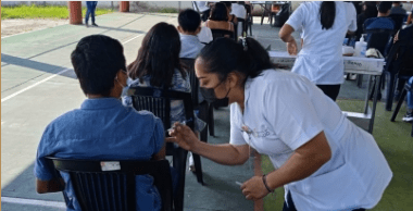 En Cunduacán, fueron programadas este día, 1 mil 300 primeras dosis de Pfizer, para adolescentes de 15 a 17 años; 400 de AstraZeneca, para primera y segunda dosis y 50 compuestos de Sinovac, para segunda dosis, en una jornada que se desarrolló, en la comunidad Carlos Rovirosa y en la cabecera municipal, informó Elizabeth Baz Rojas, jefa de la Jurisdicción Sanitaria.