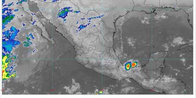 Se prevén lluvias puntuales muy fuertes (de 50 a 75 milímetros [mm]) en el este de Oaxaca y el sur de Veracruz; fuertes (de 25 a 50 mm) en sitios de Chiapas, Quintana Roo y Tabasco; intervalos de chubascos (de 5 a 25 mm) en regiones de Campeche y Yucatán, así como lluvias aisladas (de 0.1 a 5 mm) en Baja California, Baja California Sur, Chihuahua, Colima, Guerrero, Jalisco, Michoacán, Puebla, Sonora y Tamaulipas.
